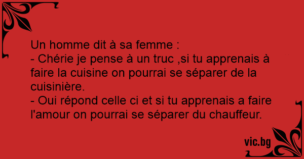 - Chérie je pense à un truc ,si tu apprenais à faire la cuisine on pourrai se séparer de la cuisinière.