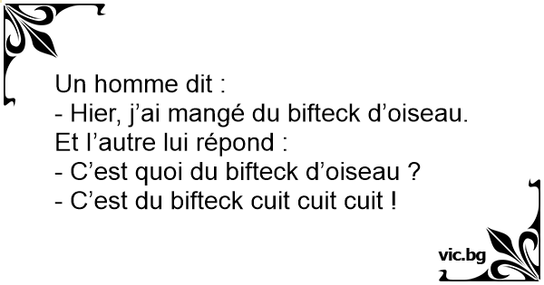 - Hier, j’ai mangé du bifteck d’oiseau.