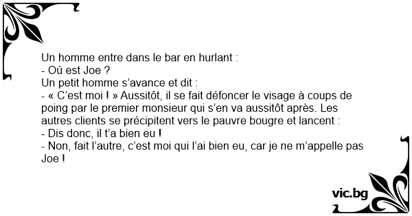 - Non, fait l’autre, c’est moi qui l’ai bien eu, car je ne m’appelle pas Joe !