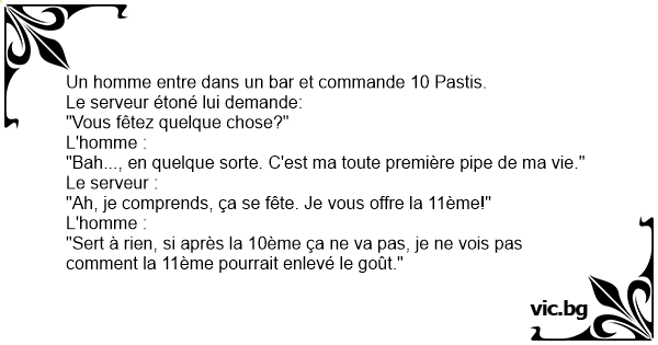 "Ah, je comprends, ça se fête. Je vous offre la 11ème!"