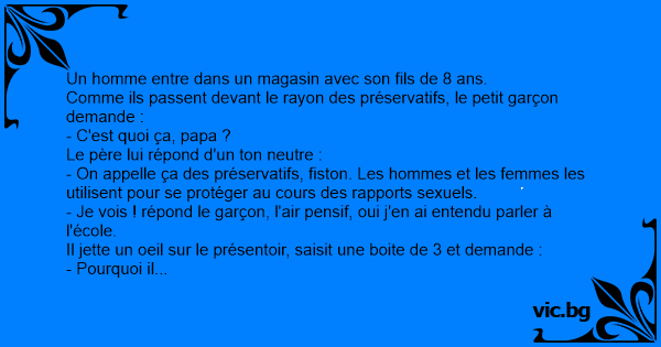 Comme ils passent devant le rayon des préservatifs, le petit garçon demande :