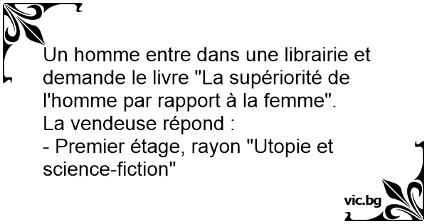 Un homme entre dans une librairie et demande le livre "La supériorité de l'homme par rapport à la femme".