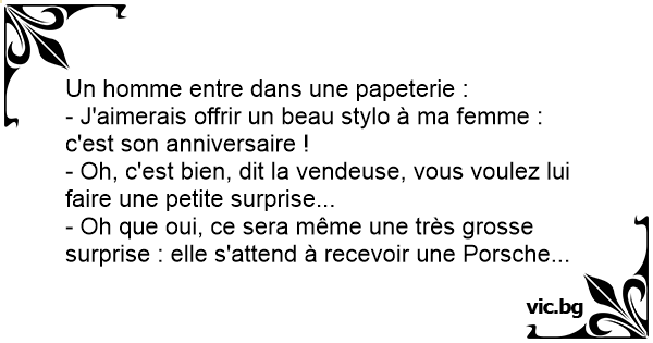 - Oh, c'est bien, dit la vendeuse, vous voulez lui faire une petite surprise...