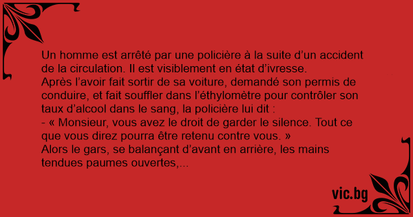 - « Monsieur, vous avez le droit de garder le silence. Tout ce que vous direz pourra être retenu contre vous. »