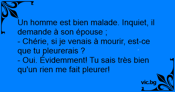 Un homme est bien malade. Inquiet, il demande à son épouse ;