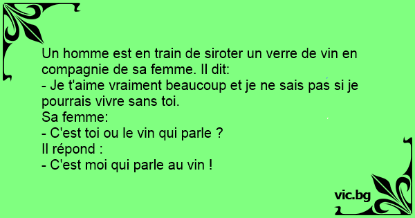Un homme est en train de siroter un verre de vin en compagnie de sa femme. Il dit: