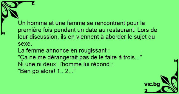 Un homme et une femme se rencontrent pour la première fois pendant un date au restaurant. Lors de leur discussion, ils en viennent à aborder le sujet du sexe.