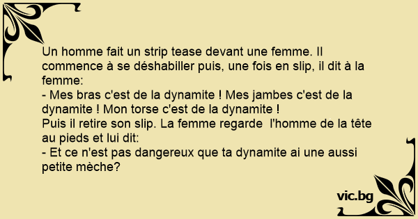 Un homme fait un sтriр tease devant une femme. Il commence à se déshabiller puis, une fois en slip, il dit à la femme: