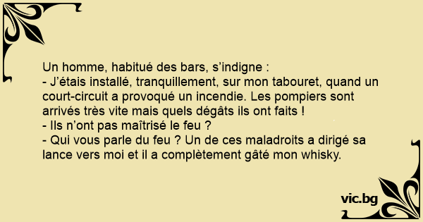 - Qui vous parle du feu ? Un de ces maladroits a dirigé sa lance vers moi et il a complètement gâté mon whisky.