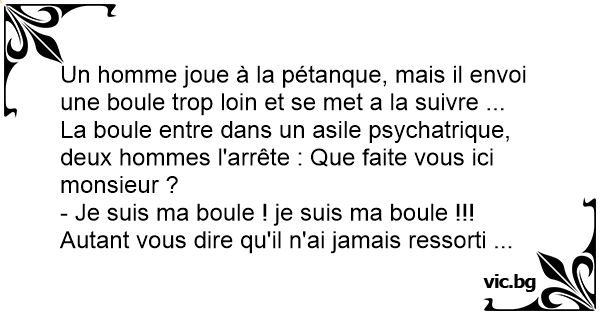 La boule entre dans un asile psychatrique, deux hommes l'arrête : Que faite vous ici monsieur ?