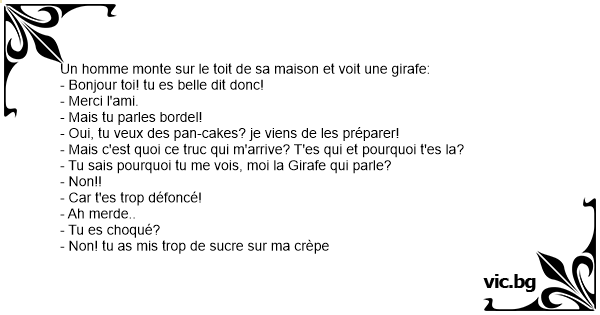 - Tu sais pourquoi tu me vois, moi la Girafe qui parle?