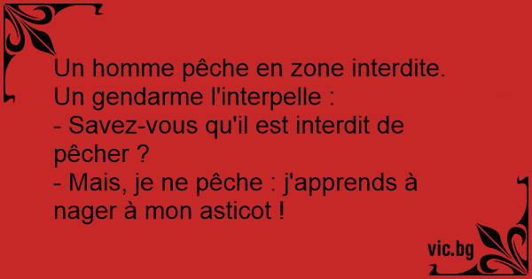 Agent: "Meneer, u mag hier niet vissen, ik zal u een boete moeten geven". Visser: "Maar ik zit niet te vissen, ik geef mijn worm zwemles". Agent: "Dan krijgt u alsnog een boete van 25 gulden, uw...