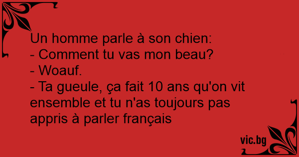 - Ta gueule, ça fait 10 ans qu'on vit ensemble et tu n'as toujours pas appris à parler français