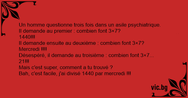 Désespéré, il demande au troisième : combien font 3×7...