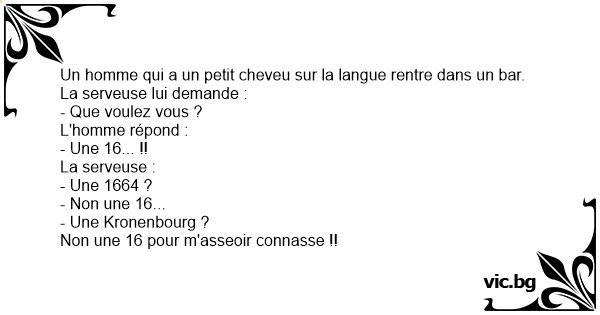 Un homme qui a un petit cheveu sur la langue rentre dans un bar.