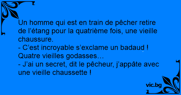 - J’ai un secret, dit le pêcheur, j’appâte avec une vieille chaussette !