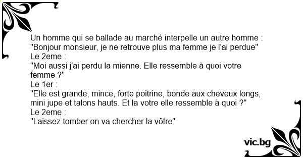 "Bonjour monsieur, je ne retrouve plus ma femme je l'ai perdue"