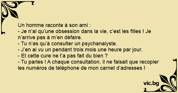 - Je n’ai qu’une obsession dans la vie, c’est les filles ! Je n’arrive pas à m’en défaire.