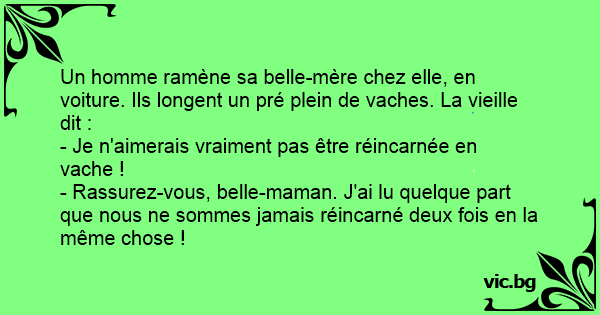 - Rassurez-vous, belle-maman. J'ai lu quelque part que nous ne sommes jamais réincarné deux fois en la même chose !