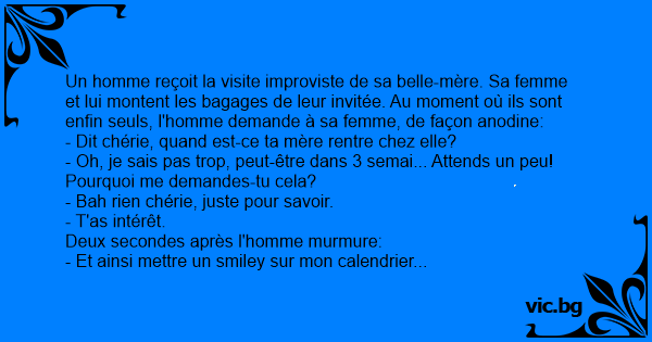 - Dit chérie, quand est-ce ta mère rentre chez elle?