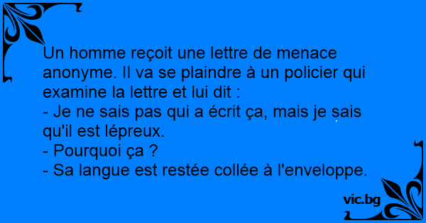 Un homme reçoit une lettre de menace anonyme. Il va se plaindre à un policier qui examine la lettre et lui dit :