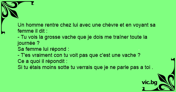 Un homme rentre chez lui avec une chèvre et en voyant sa femme il dit :