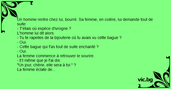 Un homme rentre chez lui, bourré. Sa femme, en colère, lui demande tout de suite: