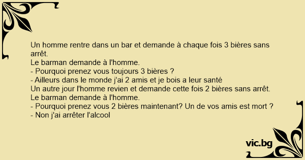 Un autre jour l'homme revien et demande cette fois 2 bières sans arrêt.