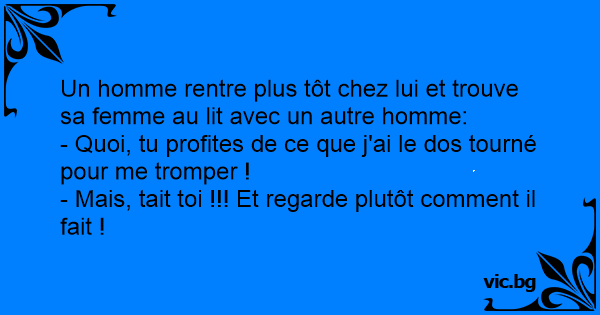 Un homme rentre plus tôt chez lui et trouve sa femme au lit avec un autre homme: