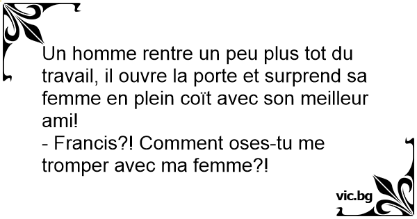- Francis?! Comment oses-tu me tromper avec ma femme?!