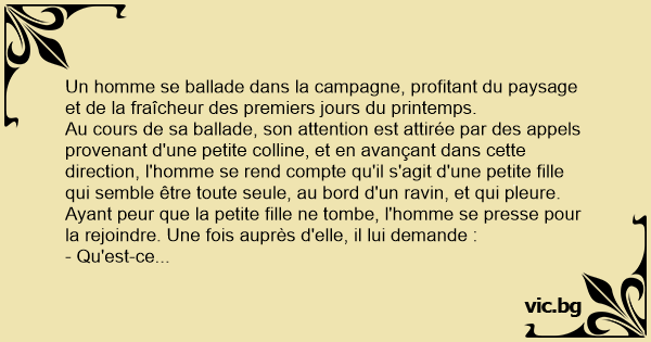 Ayant peur que la petite fille ne tombe, l'homme se presse pour la rejoindre. Une fois auprès d'elle, il lui demande :