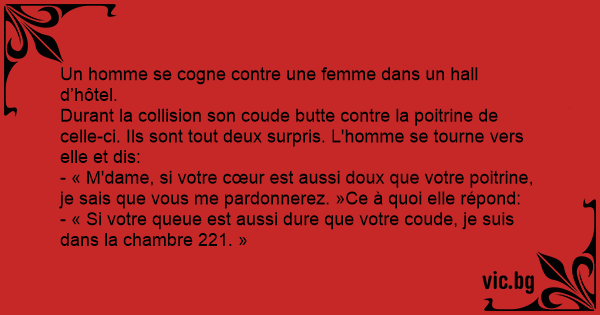 - « Si votre queue est aussi dure que votre coude, je suis dans la chambre 221. »