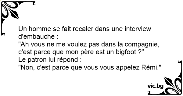 "Ah vous ne me voulez pas dans la compagnie, c'est parce que mon père est un bigfoot ?"