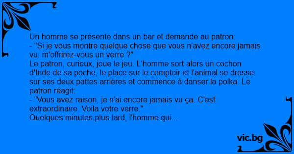Quelques minutes plus таrd, l'homme qui souhaite un second verre propose au patron: