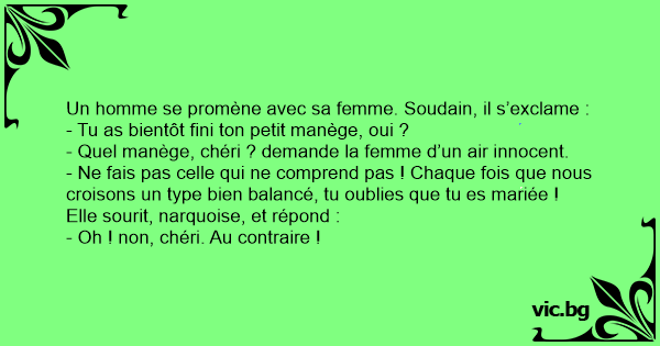 Un homme se promène avec sa femme. Soudain, il s’exclame :