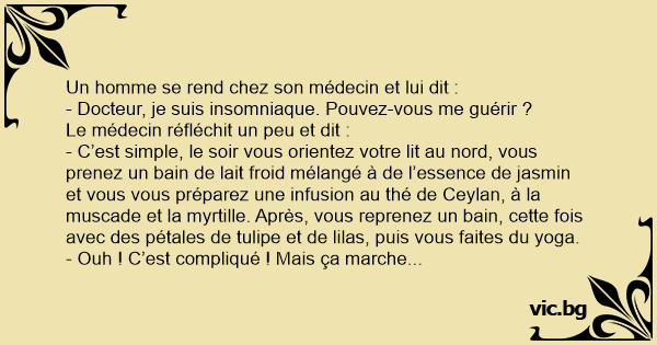 - Docteur, je suis insomniaque. Pouvez-vous me guérir ?