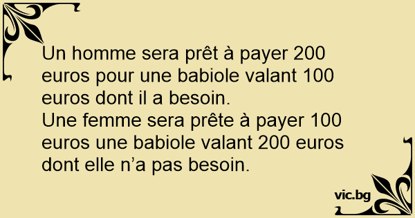 Une femme sera prête à payer 100 euros une babiole valant 200 euros dont elle n’a pas besoin.