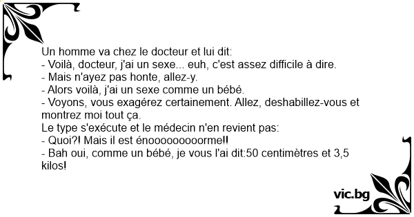 - Voilà, docteur, j'ai un sexe... euh, c'est assez difficile à dire.
