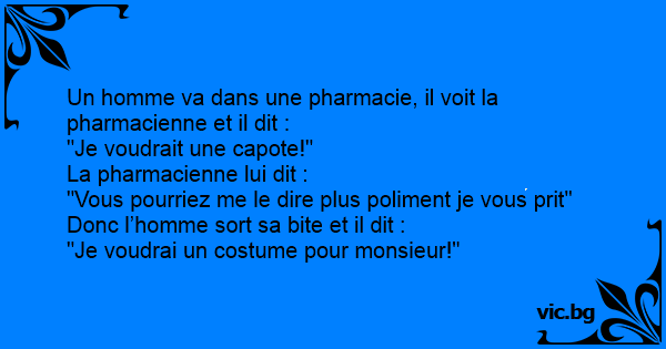 Un homme va dans une pharmacie, il voit la pharmacienne et il dit :