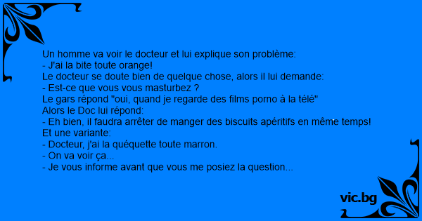- Docteur, j'ai la quéquette toute marron.