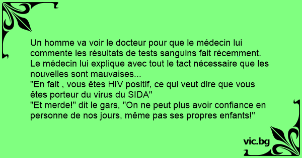 "En fait , vous êtes НIV positif, ce qui veut dire que vous êtes porteur du virus du SIDA"