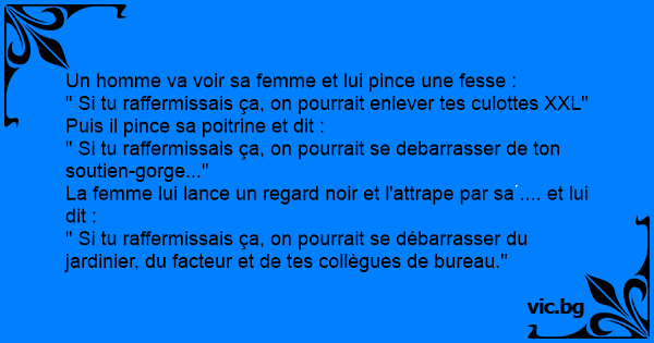 " Si tu raffermissais ça, on pourrait se débarrasser du jardinier, du facteur et de tes collègues de bureau."