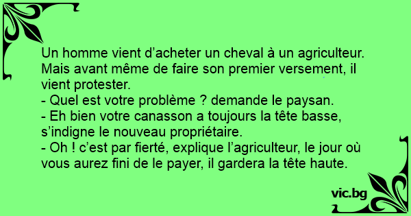 - Eh bien votre canasson a toujours la tête basse, s’indigne le nouveau propriétaire.