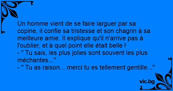 Un homme vient de se faire larguer par sa copine, il confie sa tristesse et son chagrin à sa meilleure amie. Il explique qu'il n'arrive pas à l'oublier, et à quel point elle était belle !