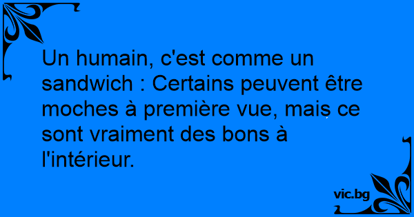 Un humain, c'est comme un sandwich : Certains peuvent être moches à première vue, mais ce sont vraiment des bons à l'intérieur.
