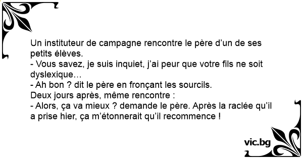 - Vous savez, je suis inquiet, j’ai peur que votre fils ne soit dyslexique…