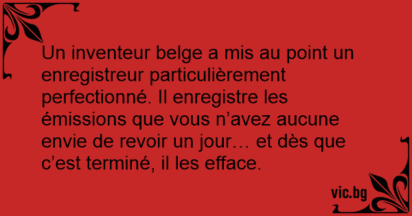 Un inventeur belge a mis au point un enregistreur particulièrement perfectionné. Il enregistre les émissions que vous n’avez aucune envie de revoir un jour… et dès que c’est terminé, il les efface.
