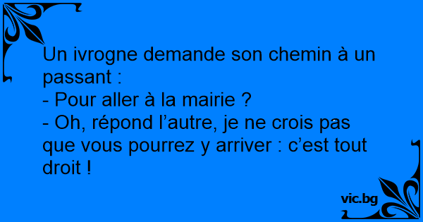 - Oh, répond l’autre, je ne crois pas que vous pourrez y arriver : c’est tout droit !