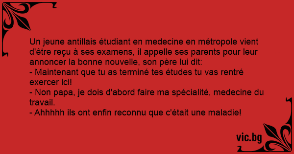 Un jeune antillais étudiant en medecine en métropole vient d'être reçu à ses examens, il appelle ses parents pour leur annoncer la воnnе nouvelle, son père lui dit: