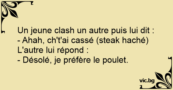 - Ahah, ch't'ai cassé (steak haché)